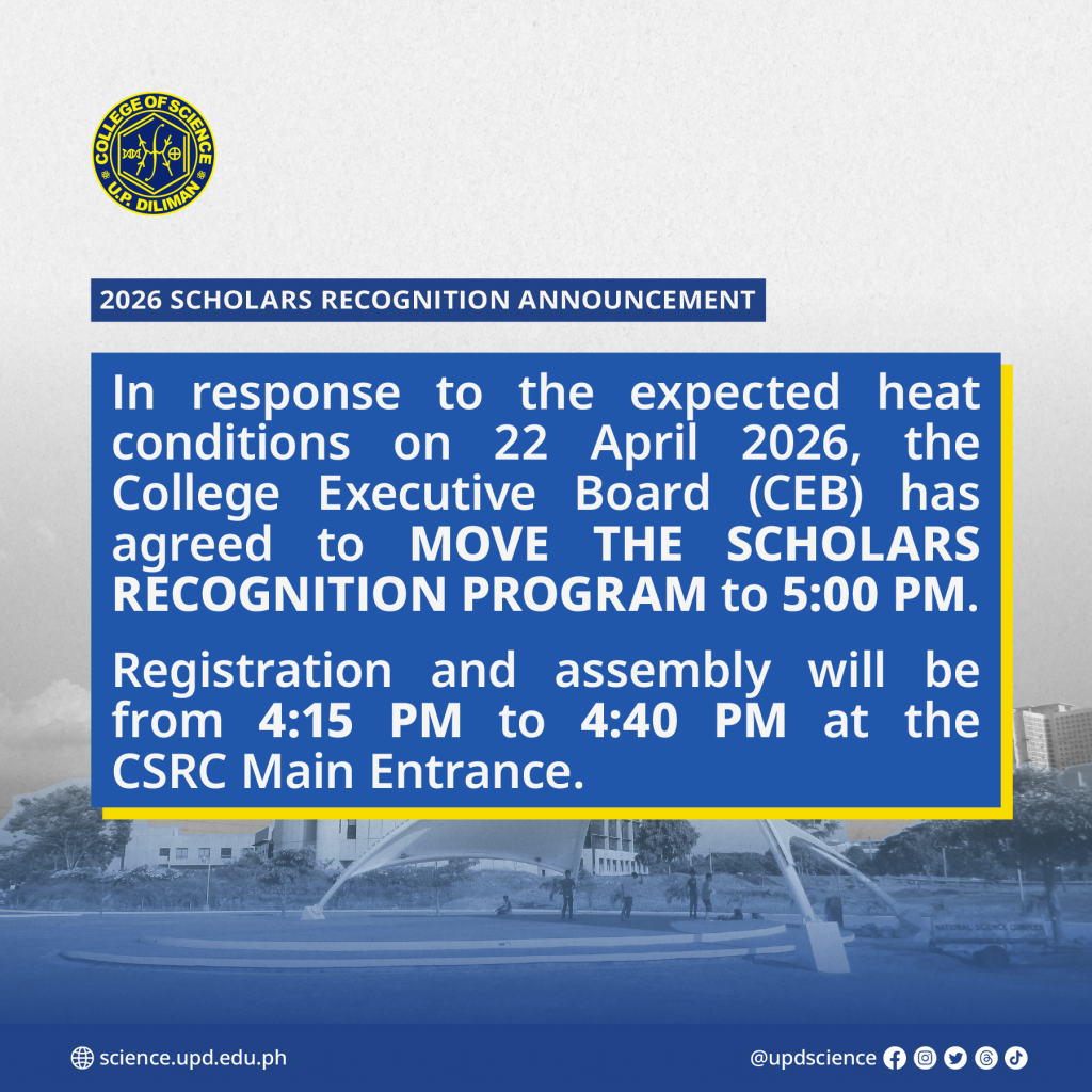 In response to the expected heat conditions on 22 April 2026, the College Executive Board (CEB) has agreed to MOVE THE SCHOLARS RECOGNITION PROGRAM to 5:00 PM.